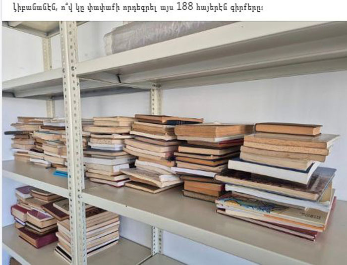 «Ո՞վ կը փափաքի որդեգրել այս հարիւր ութսունութ հայերէն գիրքերը»: Լիբանանահայերուն ուղղուած հարցում մը , որուն կ՚ընկերակցի մեծաթիւ գիրքերուն լուսանկարը: