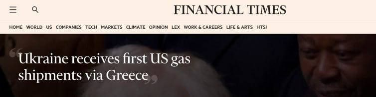Առաջին անգամ ըլլալով Ուքրանիան հեղուկ կազ պիտի ստանայ Մ. Նահանգներէն, Յունաստանի տարածքով, կը գրէ Financial Times-ը։