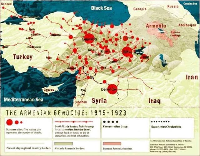 Արաբներից յետոյ Մերձաւոր Արեւելքի երկրորդ ամէնամեծ ազգից հայերը վերածուեցին աշխարհով մէկ ցրուած փոքր ժողովրդի։ Անհրաժեշտ է յիշել, որ հայերի ցեղասպանութիւնն իրականացրել է թուրքական կառավարութիւնը Գերմանիայի օգնութեամբ՝ երեք պետութիւնների տարածքում – Օսմանեան կայսրութիւնում, Ռուսական կայսրութիւնում (հետագայում՝ Հայաստան, Վրաստան եւ Ատրպէյճան) եւ Պարսկաստանում՝ ժամանակակից Իրանում։