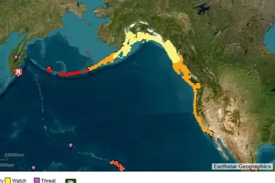 Նախազգուշացոմներ եղած են նաեւ Քալիֆորնիայի, Ալասքայի, Հաուայի, Քանատայի Բրիտանական Քոլումպիայ նահանգի, Չինաստանի Շանկհայ եւ Ճեծիանի նահանգներուն։