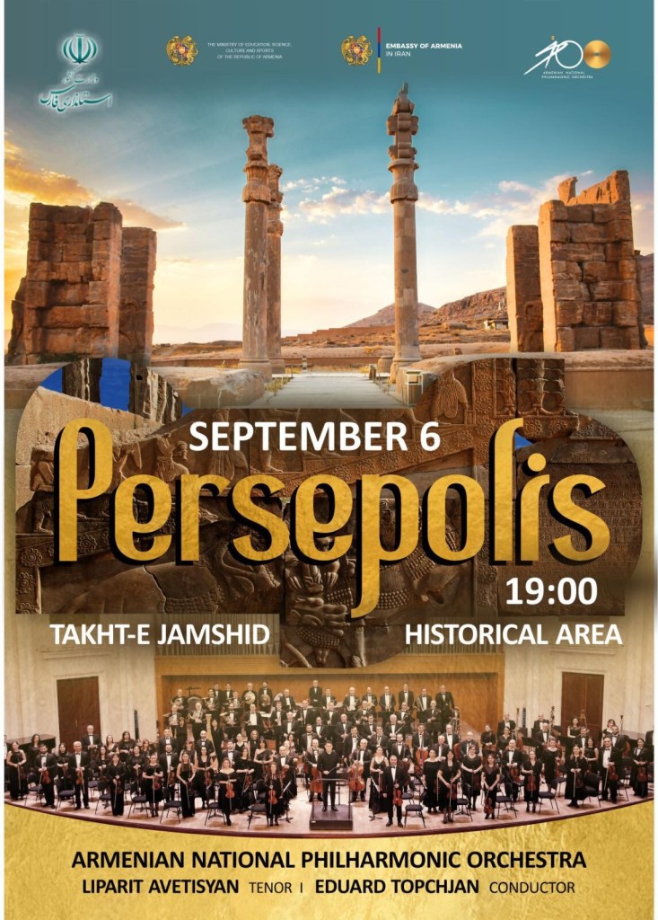 Փերսեպոլիսի պատմական յուշարձան-համալիրի տարածքին մէջ Սեպտեմբեր 6ին տեղի պիտի ունենայ Հայաստանի ազգային ֆիլհարմոնիք նուագախումբի բացօթեայ համերգը։
